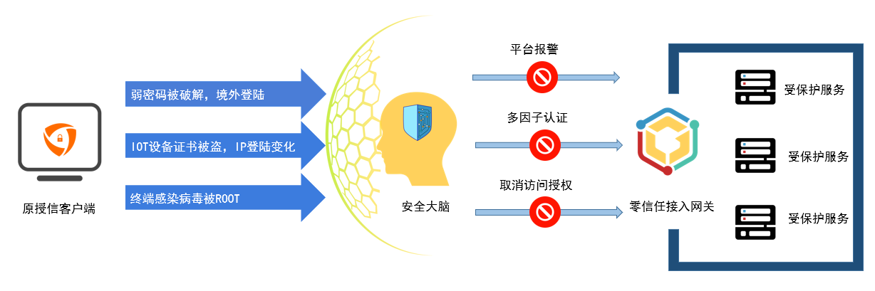 同時(shí)系統(tǒng)會(huì)根據(jù)身份的登陸習(xí)慣變化(如時(shí)間、地理位置、網(wǎng)絡(luò)等),并結(jié)合終端運(yùn)行環(huán)境檢測(cè)評(píng)級(jí)技術(shù), 動(dòng)態(tài)調(diào)整用戶登錄策略,始終控制用戶的最小訪問(wèn)權(quán)限。