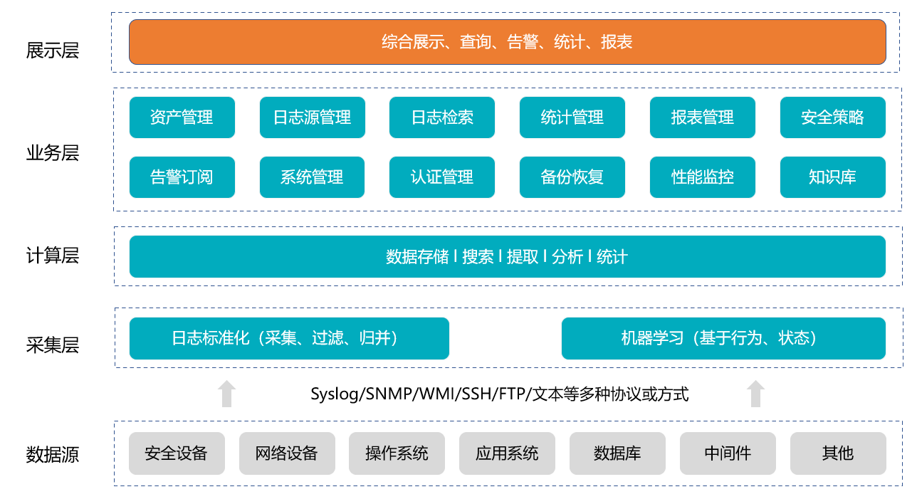 包括資產(chǎn)管理、日志源管理、日志檢索、安全策略、統(tǒng)計(jì)報(bào)表等一系列用戶實(shí)際使用業(yè)務(wù),用戶通過(guò)不同業(yè)務(wù)功能對(duì)系統(tǒng)進(jìn)行不同的管理操作。