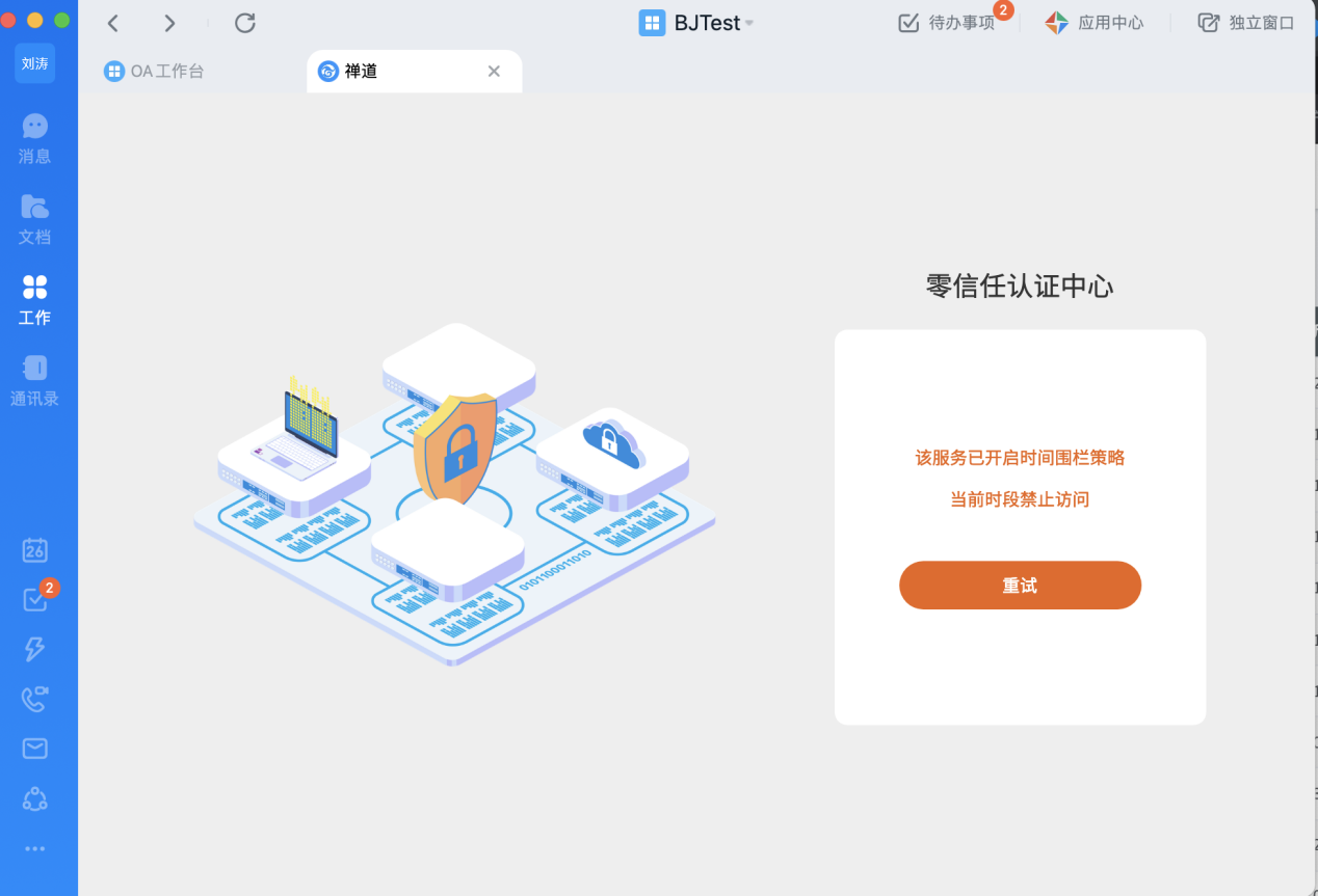 用戶登錄釘釘工作臺,看到的下面兩個應(yīng)用即為受零信任保護的私有部署Web應(yīng)用: