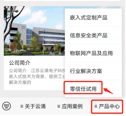 首先關(guān)注云涌科技官方微信公眾號(hào),然后進(jìn)入【產(chǎn)品中心】菜單,并點(diǎn)擊下拉菜單中的【零信任試用】進(jìn)入試用頁(yè)面,點(diǎn)擊免費(fèi)試用根據(jù)提示操作即可。