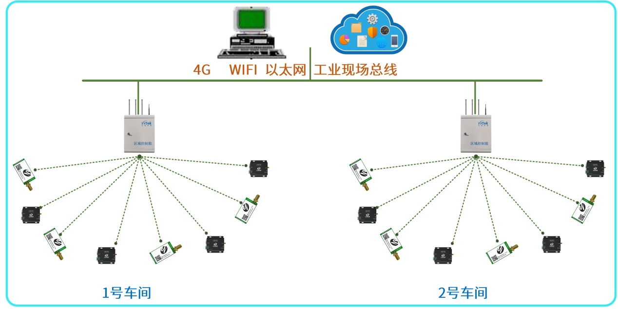 一個廠區(qū)可以配備多個區(qū)域控制箱,每個控制箱最多配備500-2000個設(shè)備節(jié)點(diǎn),每個區(qū)域柜都能與工業(yè)系統(tǒng)進(jìn)行對接,也可相互通訊;