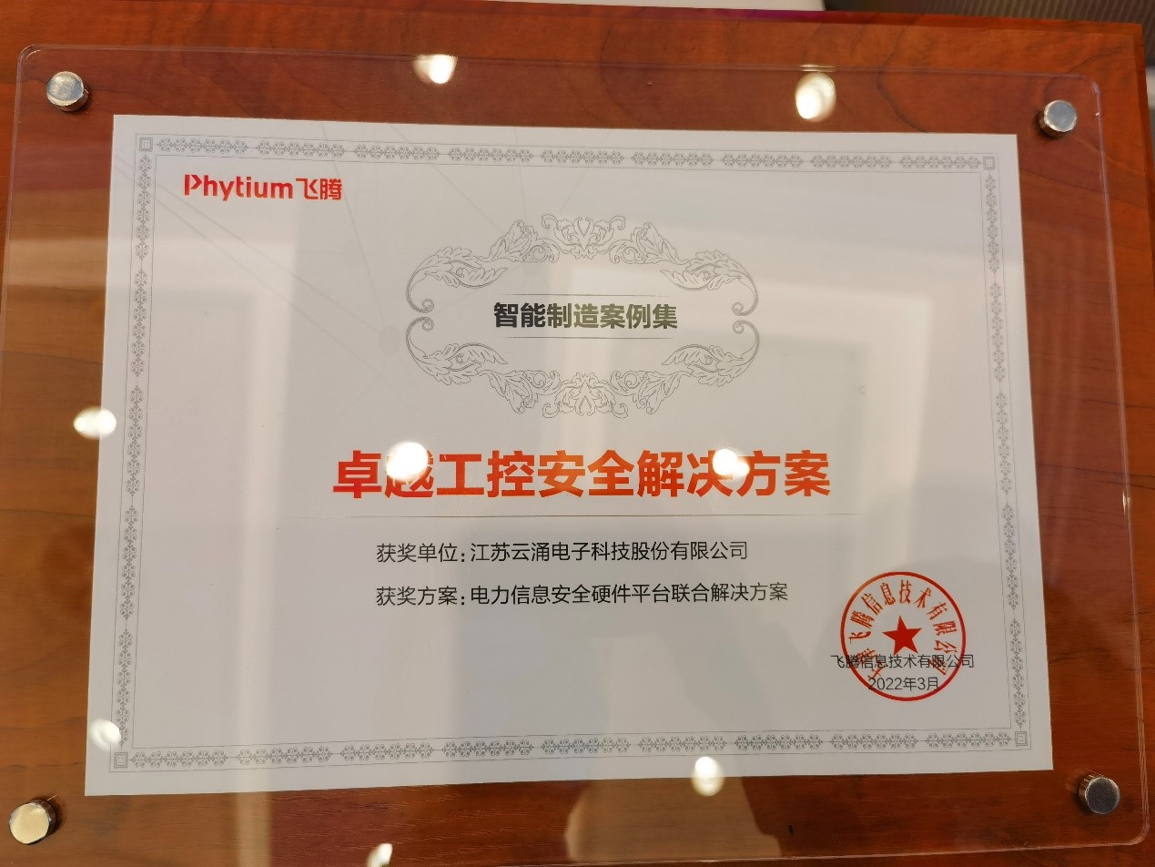 在同期舉辦的“工控和工業(yè)軟件產(chǎn)品、解決方案和創(chuàng)新應(yīng)用案例展示”活動(dòng)中,飛騰新品E2000的正式介紹發(fā)布,云涌科技《電力信息安全硬件平臺(tái)聯(lián)合解決方案》榮獲“卓越工控安全解決方案”的稱(chēng)號(hào),入選智能制造案例集。