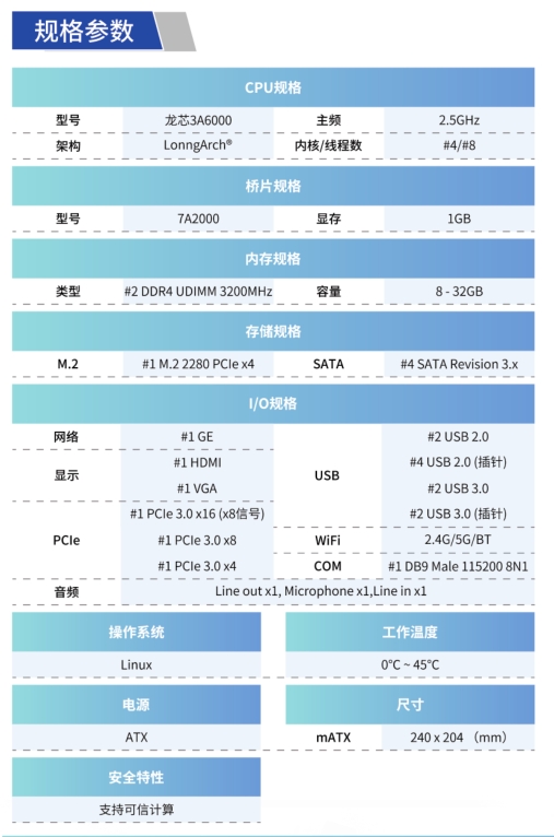 由云涌科技推出的基于3A6000的系列產(chǎn)品,采用4核處理器構(gòu)建,主頻2.5GHzo,搭配7A2000橋片,1GB獨(dú)立顯存,支持2路UDIMM3200DDR4內(nèi)存條,支持M.2接口,可作為小容量固態(tài)系統(tǒng)盤使用,應(yīng)用于家用娛樂、商務(wù)辦公等場景。
