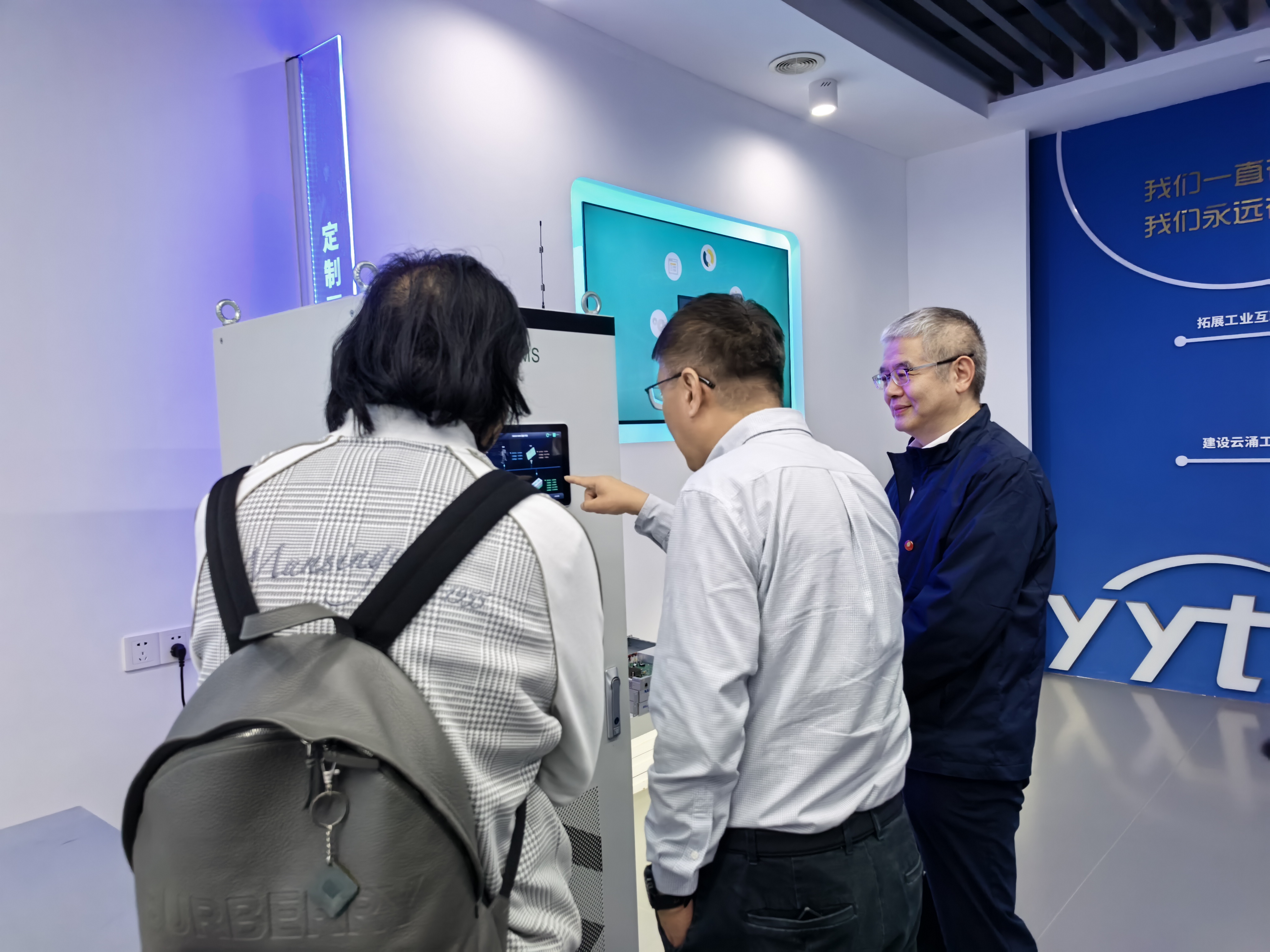 考察期間,胡偉武董事長一行先后走訪了云涌科技展廳、實驗驗證中心及制造中心,實地察看智能料倉、SMT 貼片、DIP 插件、整機組裝與成品測試等全流程生產(chǎn)環(huán)節(jié)。在制造中心,詳細了解了公司的生產(chǎn)調(diào)度體系、質(zhì)量管控標準及工廠信息化建設(shè)情況,對云涌科技在硬件制造領(lǐng)域的規(guī)范化管理與技術(shù)實力給予高度評價,尤其贊賞了公司在生產(chǎn)效率、質(zhì)量把控及數(shù)字化轉(zhuǎn)型方面取得的顯著成效。