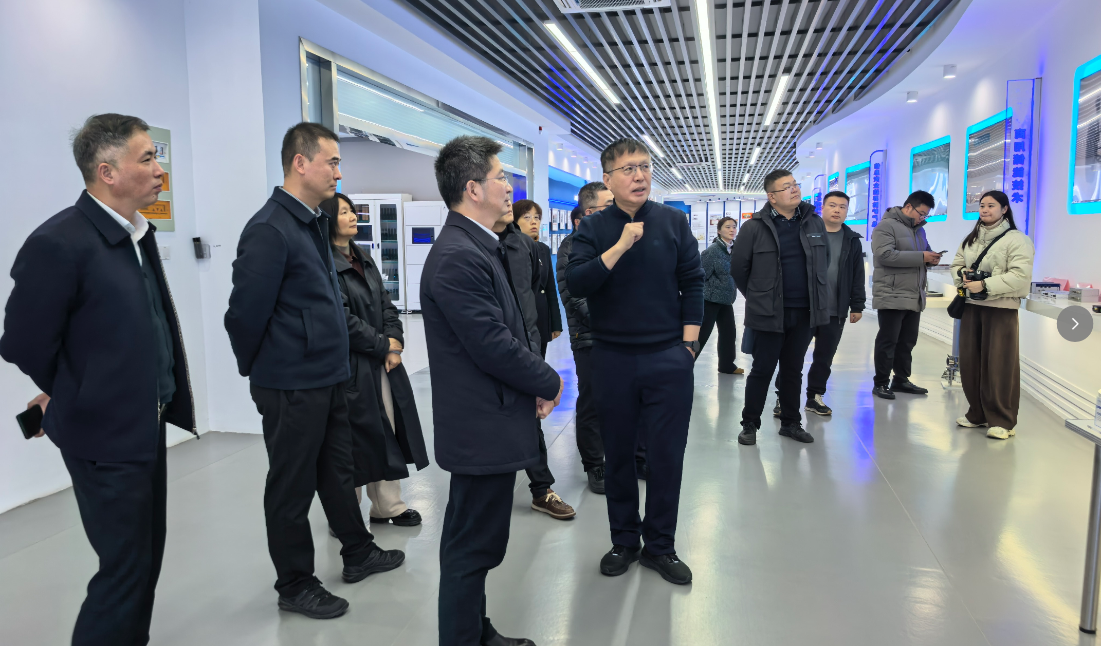 考察伊始,在董事長高南的帶領下,朱松青副校長一行首先參觀了云涌科技展廳。展廳內,高南董事長詳細介紹了公司的發展歷程、核心技術優勢、新能源領域戰略布局及相關產品應用成果,重點展示了公司在虛擬電廠、儲能技術等前沿領域的研發進展與實踐案例,讓考察團一行對云涌科技的創新實力與產業影響有了全面深入的了解。